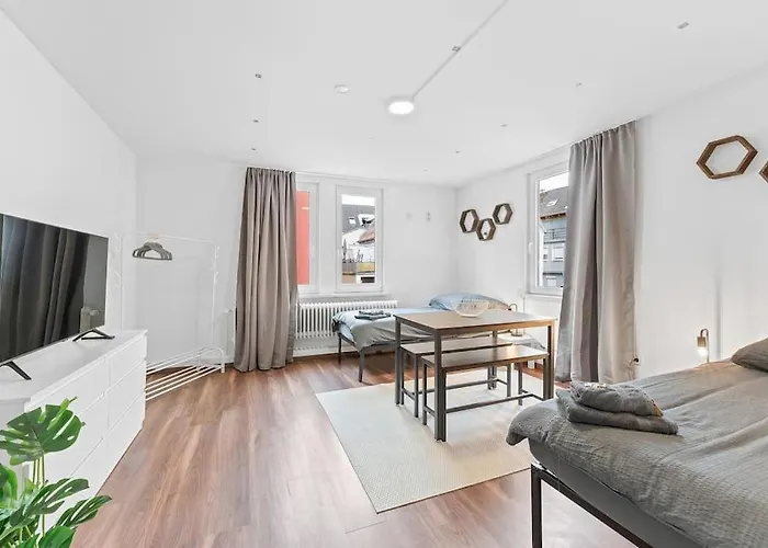 Situated 25 minutes' stroll from City walls of Esslingen, the 1-room Es02 Schones Apartment Fur Teams - 2 Schlafzimmer, 4 Einzelbetten, Nahe Messe Oberesslingen provides guests with Wi-Fi for either business or leisure. The apartment is situated 5 minutes' walk from Oberesslingen train station and in close proximity to Indexstrasse/Bahnhof bus station.